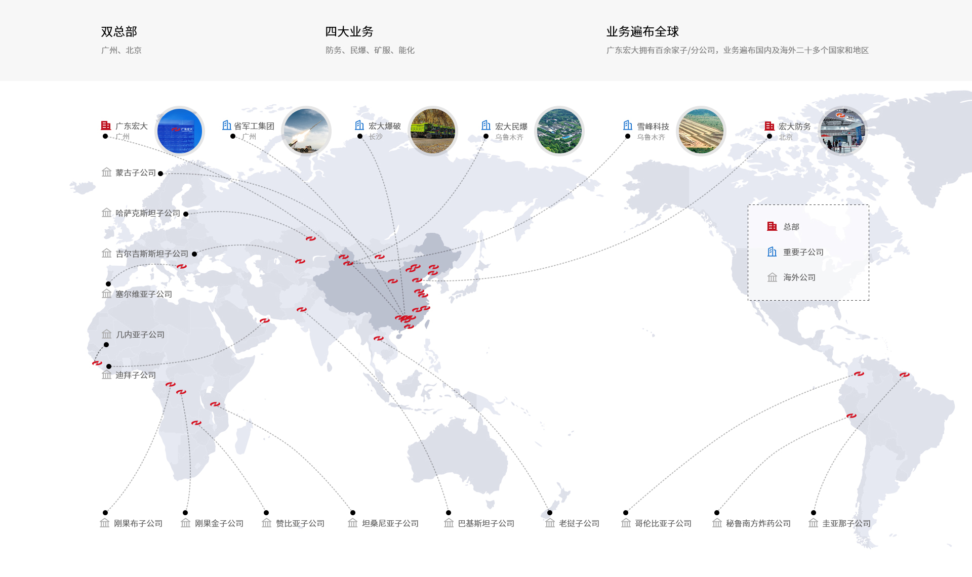 近年,,,,,广东122cc太阳集成游戏放眼世界,,,,,构建全新的战略蓝图,,,,,坚定不移向军工转型、向国际化进军,,,,,以军贸牵引、矿服先行、民爆落地为路径,,,,,以科技赋能产业升级,,,,,致力成为全球防务、民爆、矿服、能化行业的引领者。。。。。。